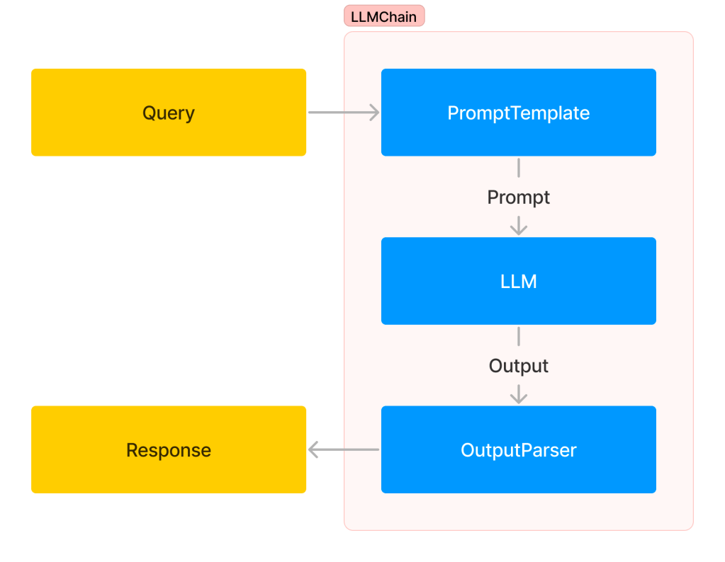 앞에서 LangChain의 LLMChain을 살펴봤습니다. PromptTemplate, LLM, OutputParser를 연결해서 편리하게 사용할 수 있는 기능이었죠. 그림으로 표현해봅시다.